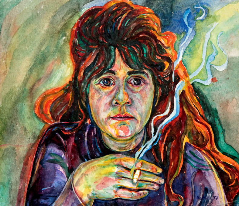 Bettina Heinen-Ayech (1937-2020): Selbstbildnis mit Zigarette, 1977, Photo: Daniela Tobias